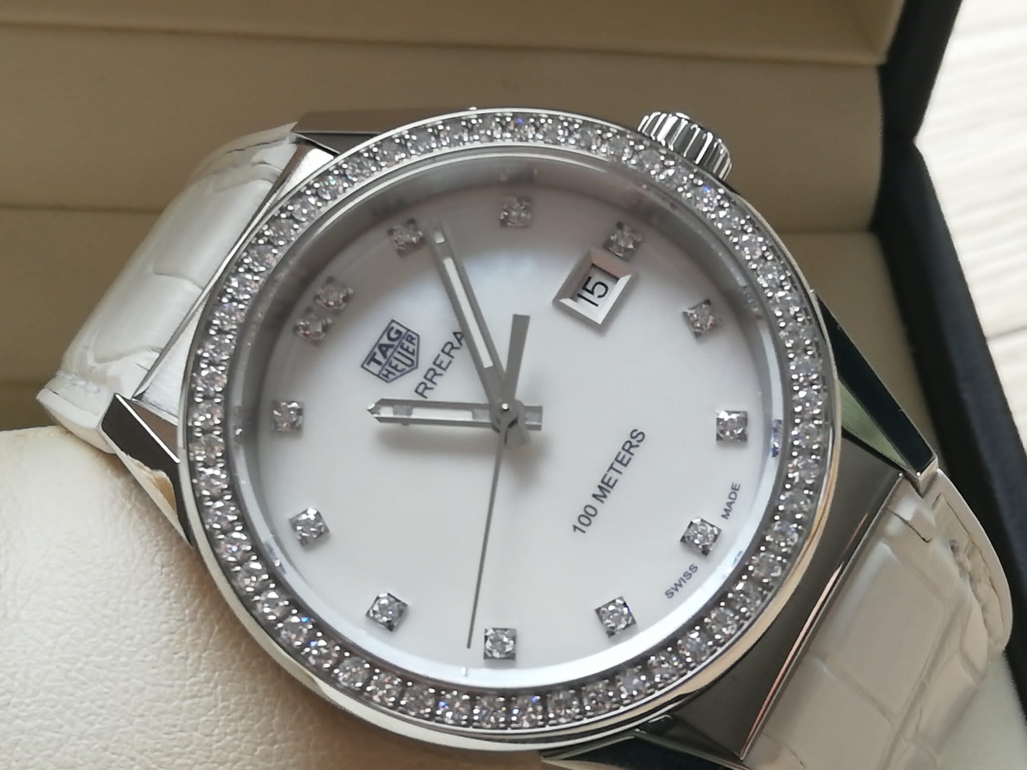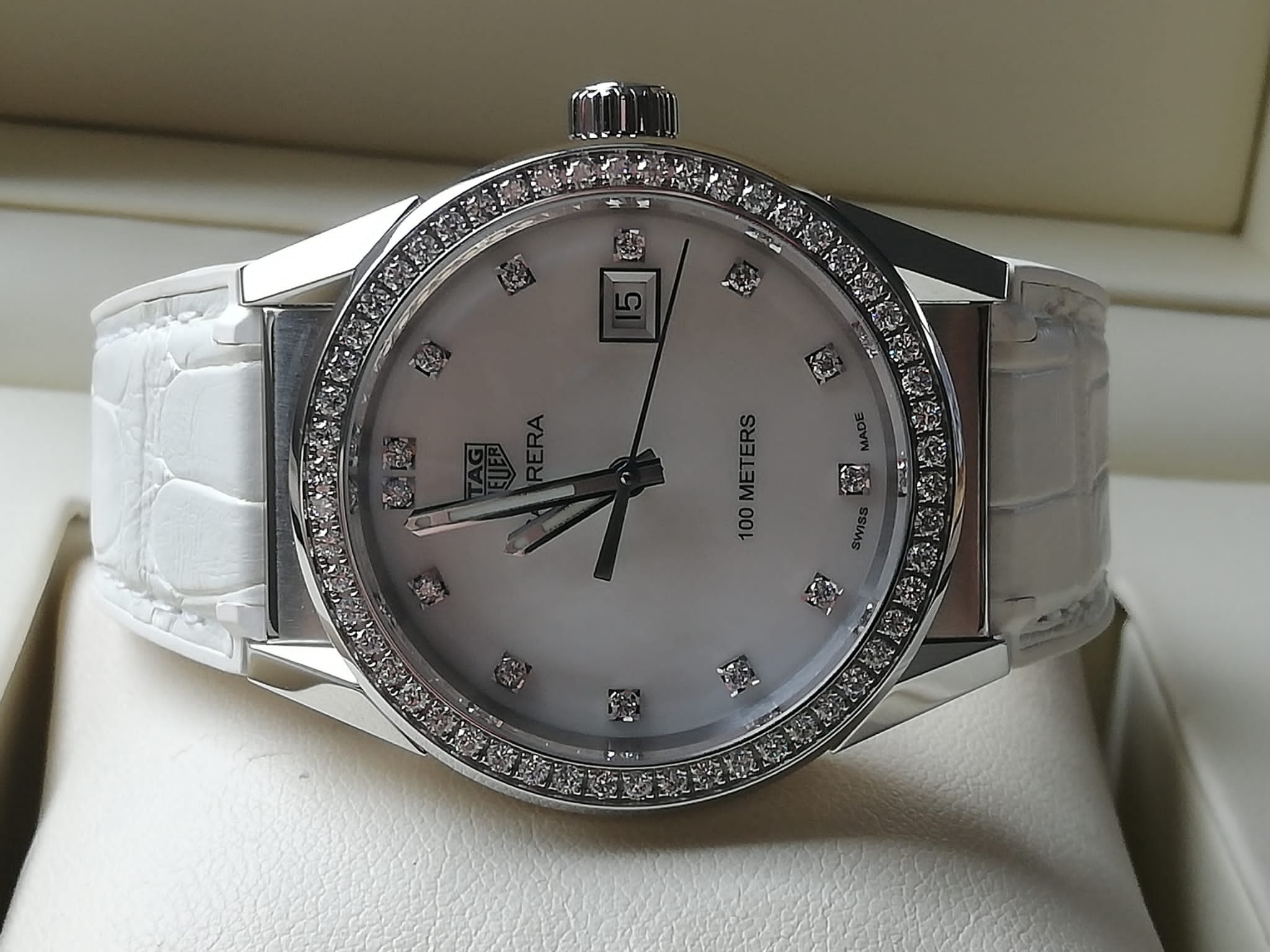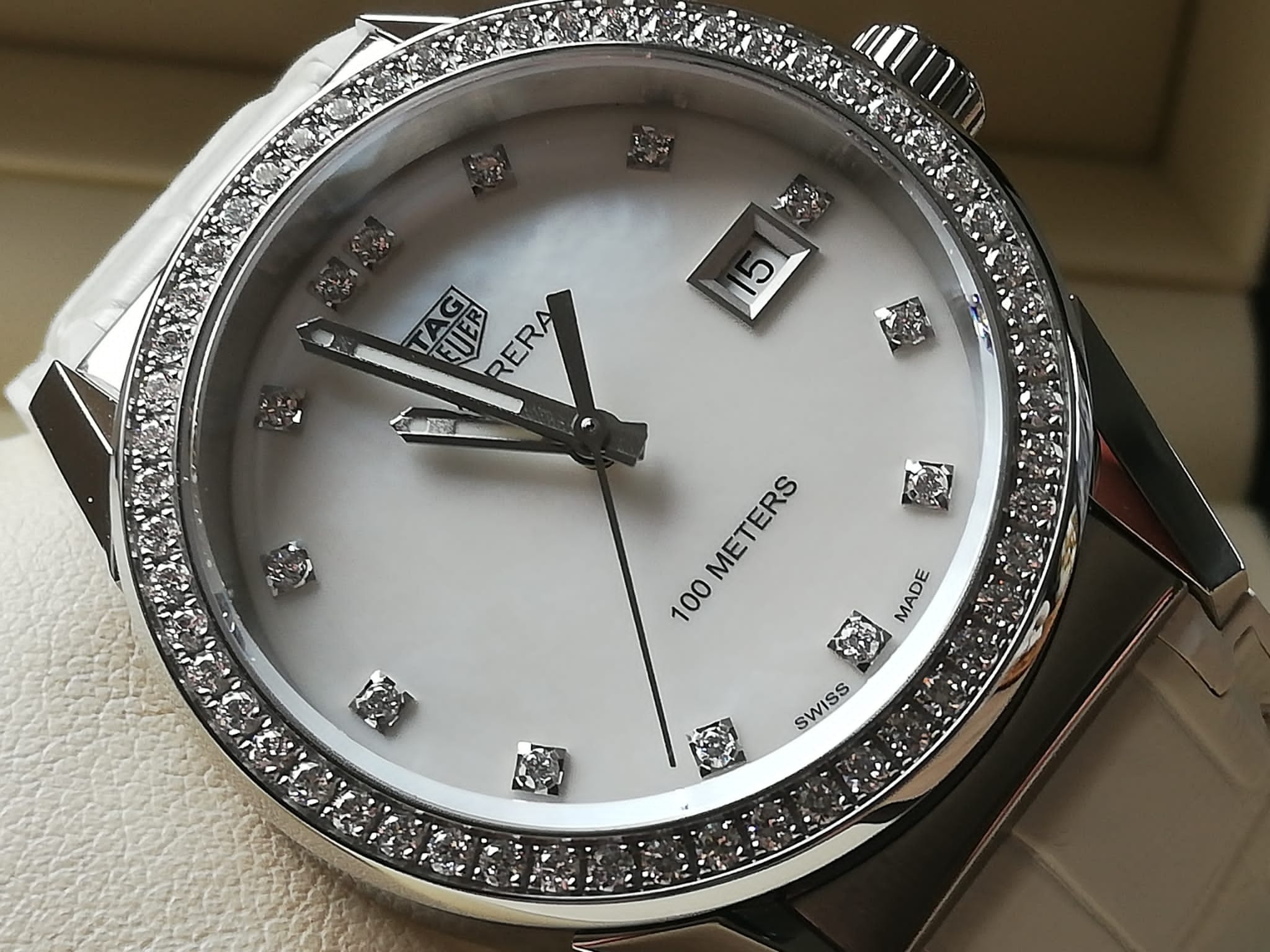 | Barva číselníku | perleťová s brilianty |