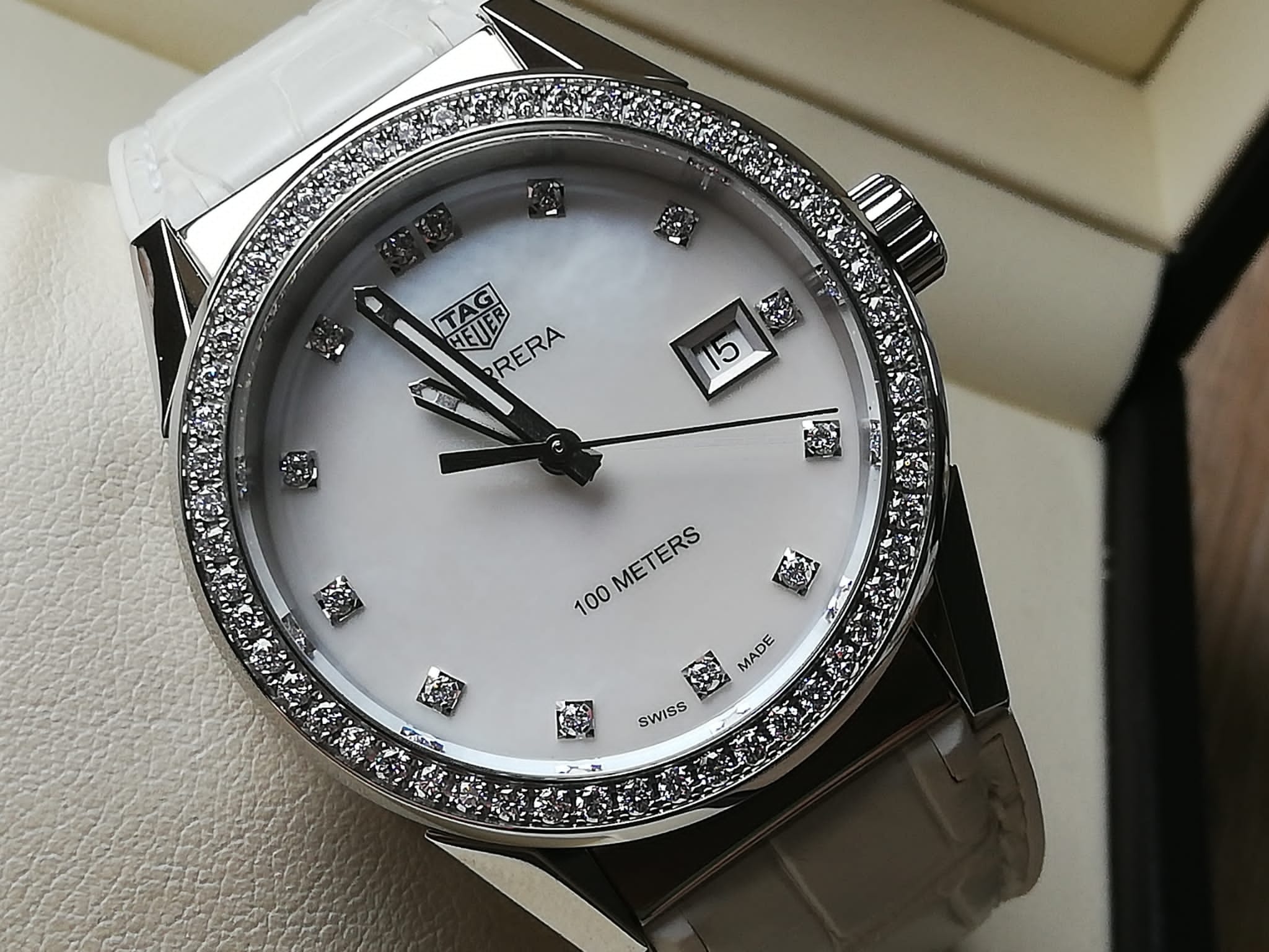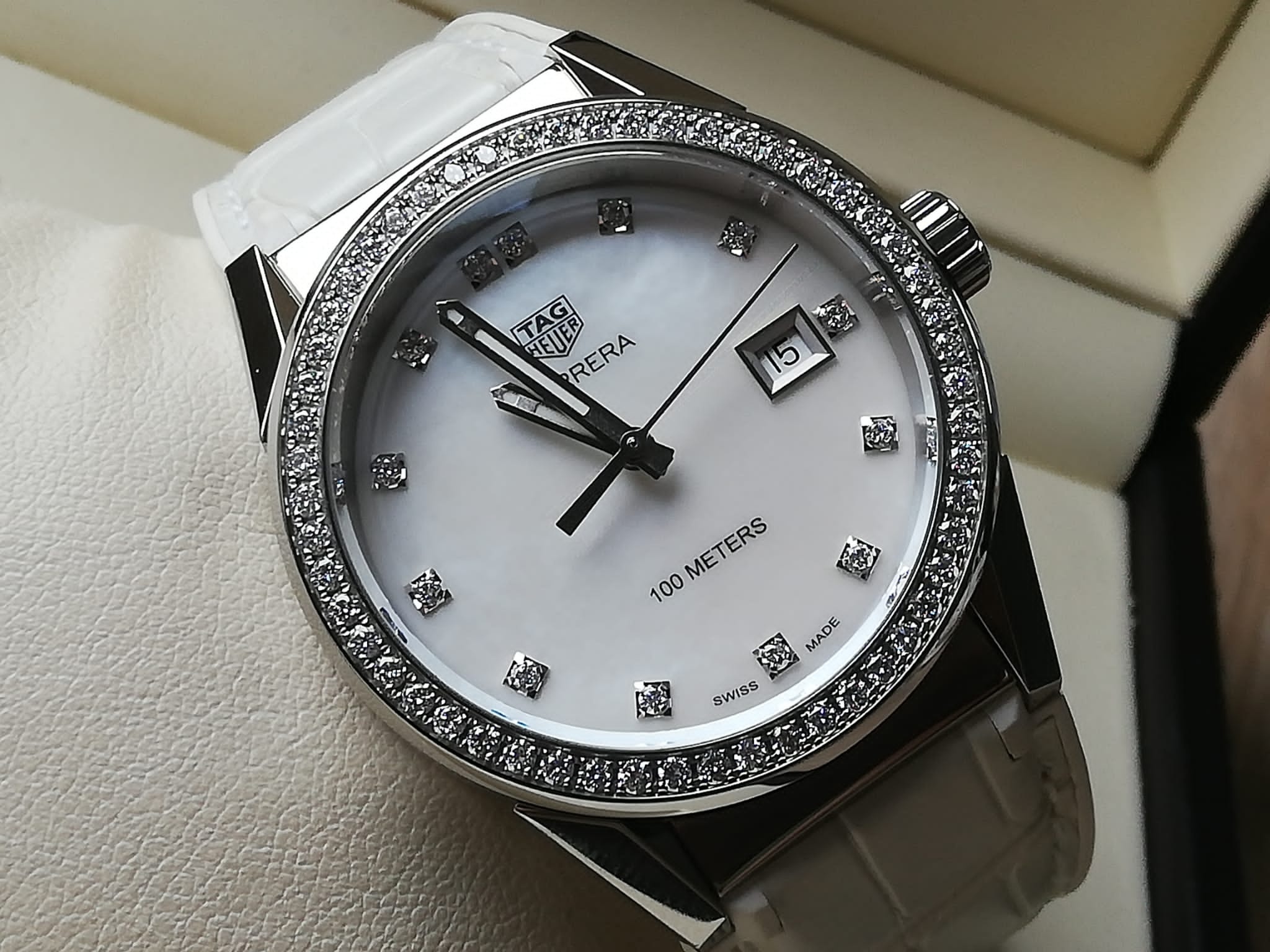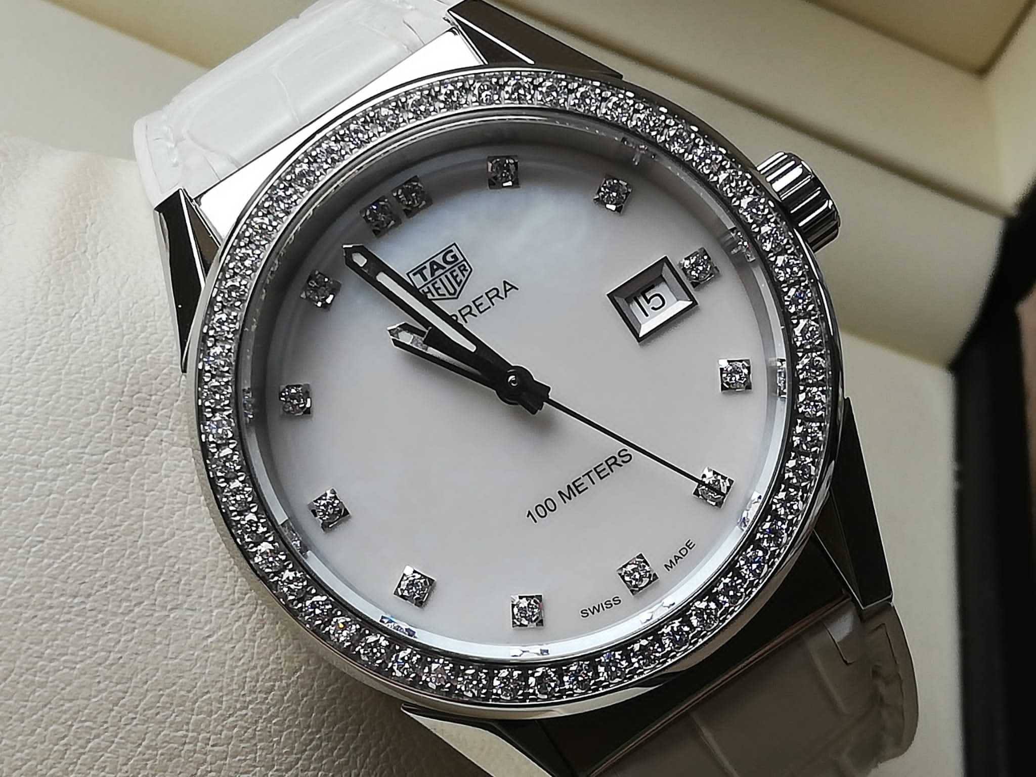 | Barva číselníku | perleťová s brilianty |